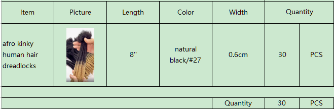 | Material&Style | 100% handmade human hair afro kinky loc extensions. |